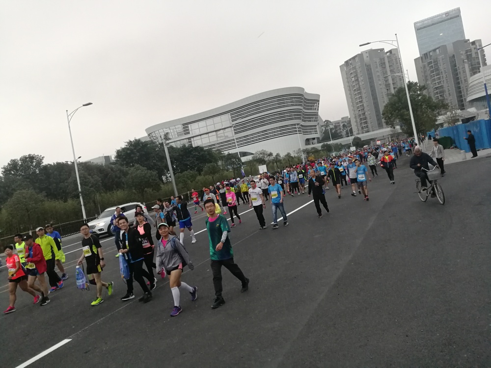 當(dāng)天早上六點半,報名參加歡樂跑以及半程馬拉松的23位同事整裝待發(fā),一起乘坐中巴前往黃埔體育館。盡管當(dāng)天氣溫較前一天有點低,甚至下起了小雨,但是大家依然熱情高漲,一路上有說有笑,好不熱鬧。八點整,開跑槍聲準(zhǔn)時響起,場內(nèi)頓時沸騰起來。